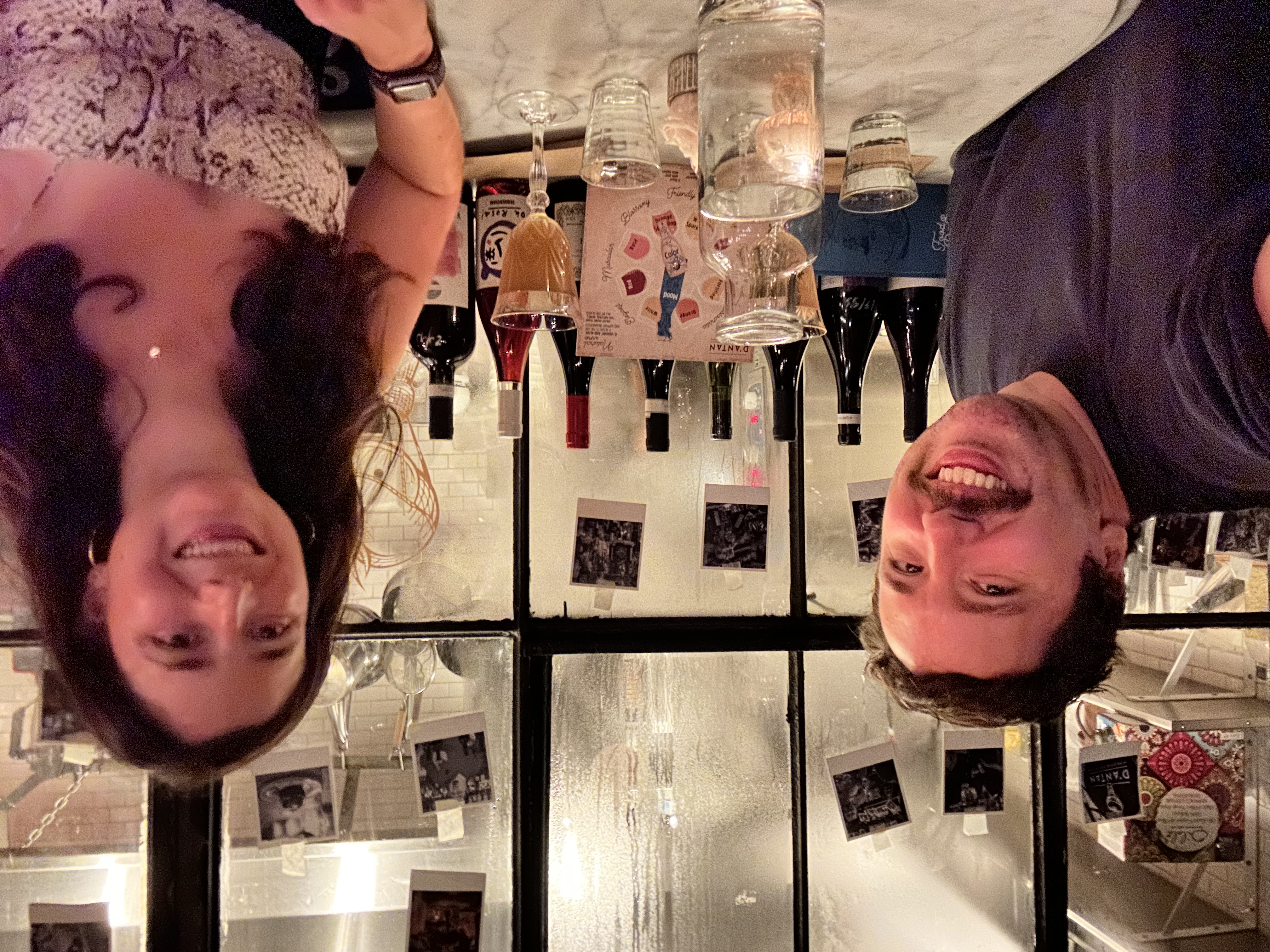 They met for drinks at a wine bar and were pressured into ordering a full dinner. Editor's Note: This photo is from when we went back two years later.
