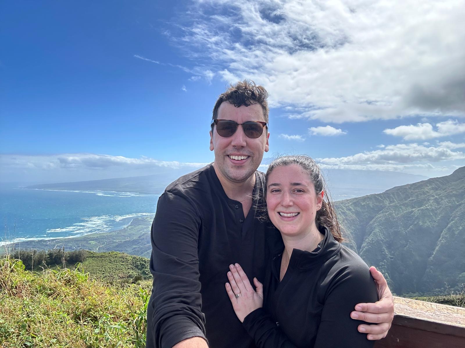 Alex achieved the impossible and managed to surprise Laura with a proposal on a hike while on vacation in Maui. He is now trusted to plan vacations for the rest of their lives.